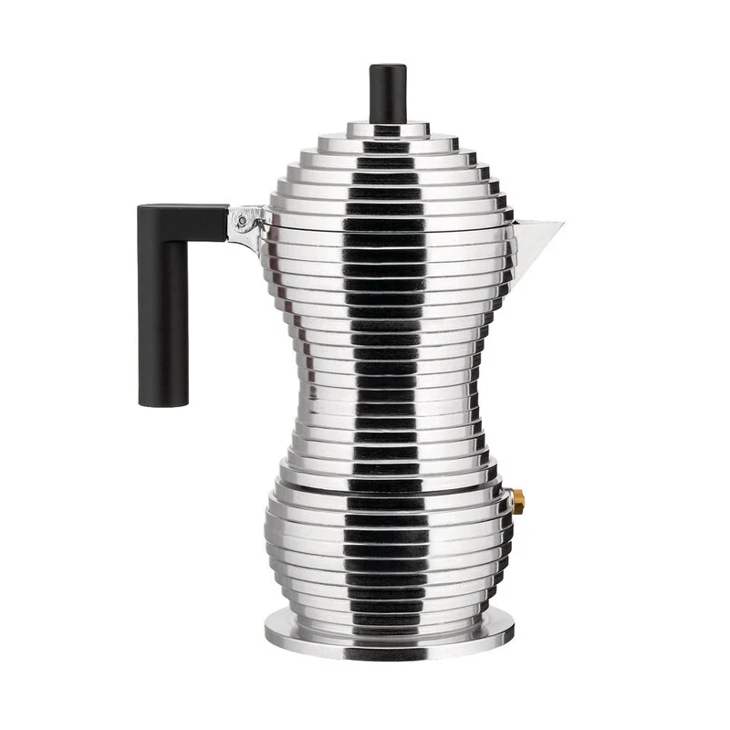 Caffettiera espresso in fusione di alluminio. Manico e pomolo in PA, nero. Fondo in acciaio magnetico adatto anche alla cottura a induzione.